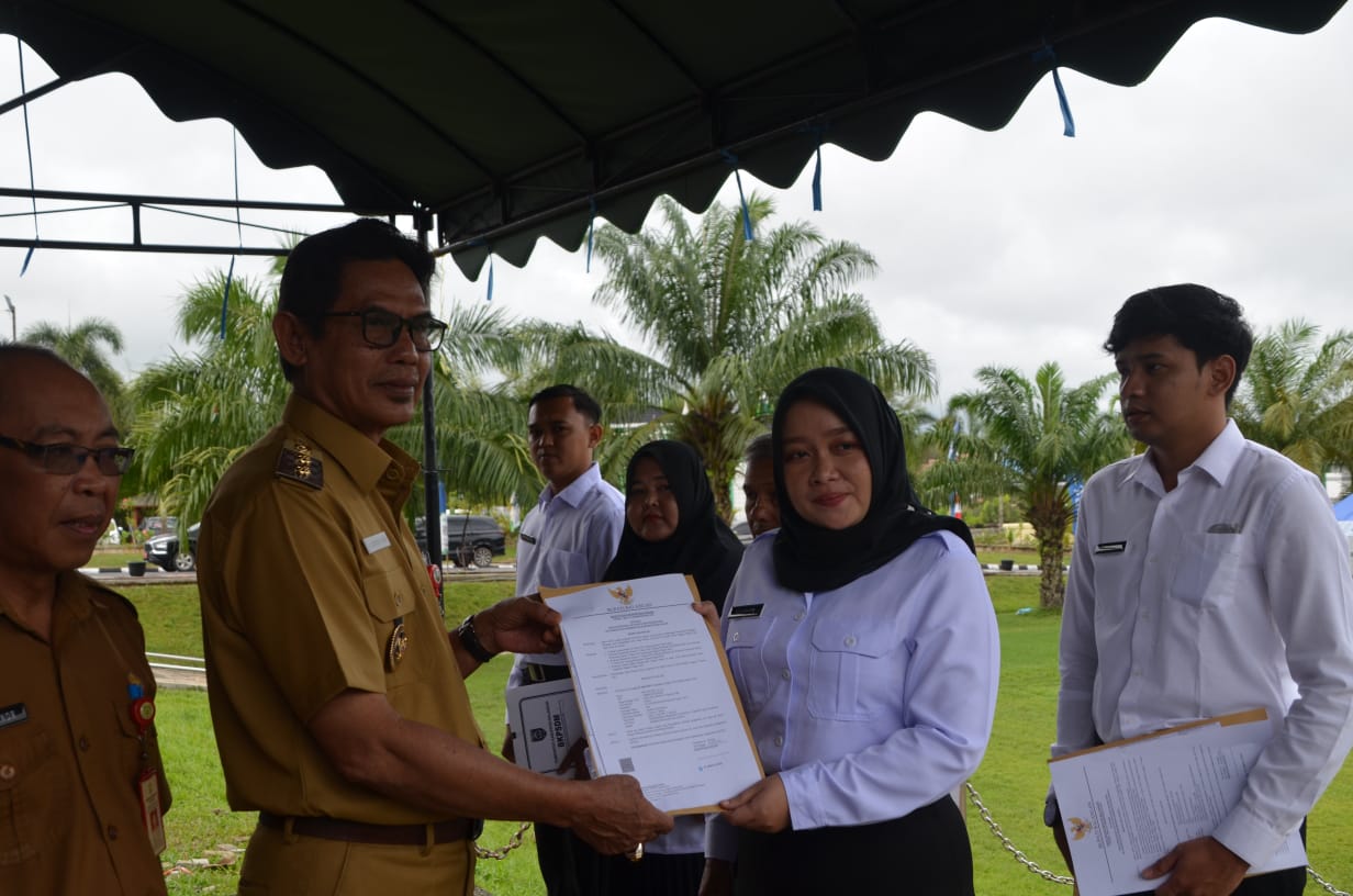 Penyerahan dilakukan secara simbolis oleh Wakil Bupati Balangan Akhmad Fauzi, di halaman Kantor Bupati setempat. Dari jumlah tersebut, ada 176 orang merupakan CPNS dan 410 lainnya adalah PPPK.