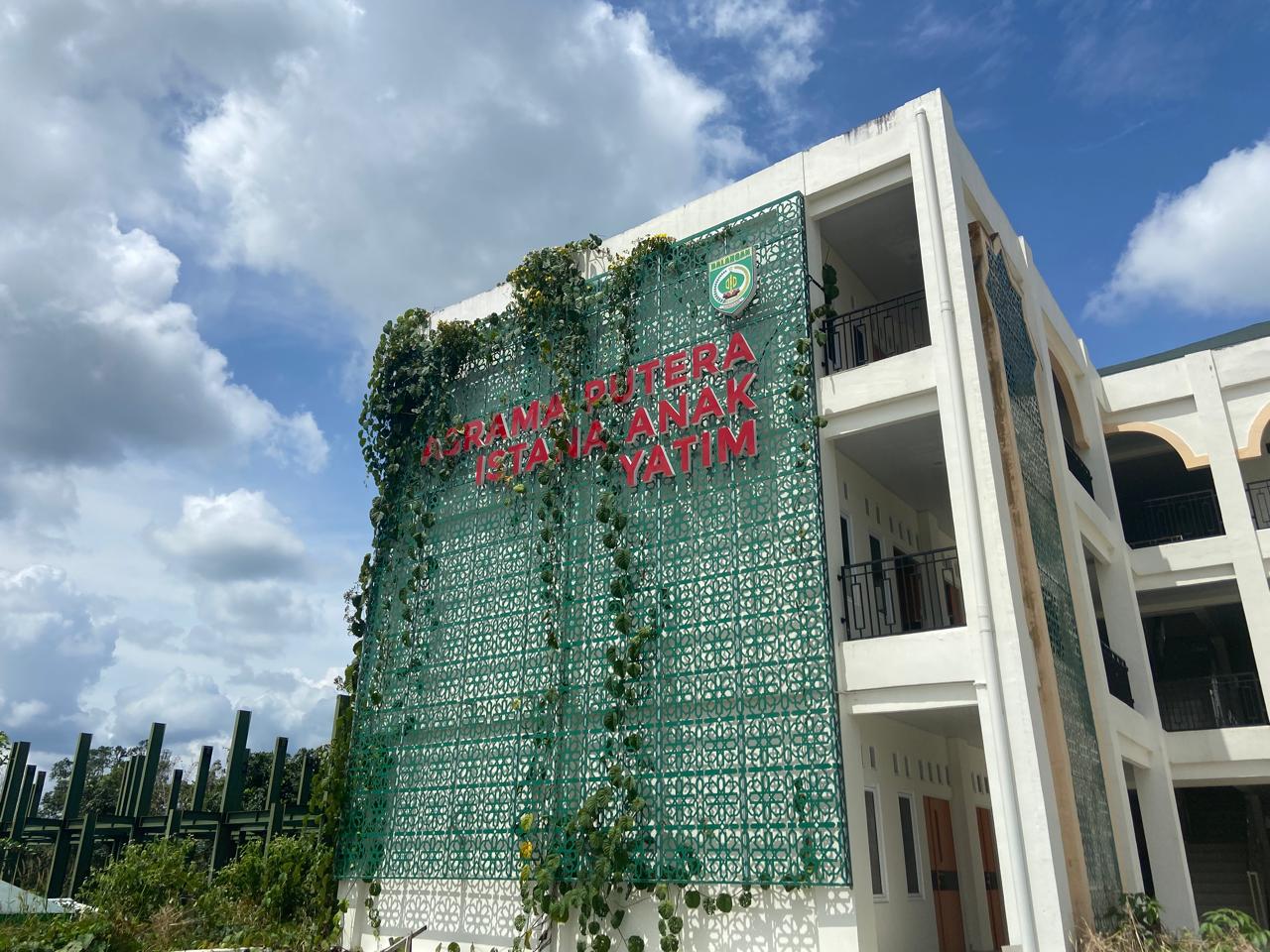 Berdasarkan pantauan di lokasi, asrama putra tampak kosong tanpa penghuni. Area sekitar bangunan terlihat seperti tidak terawat, dengan rumput liar tumbuh lebat hingga menutupi sebagian dinding bertuliskan “Asrama Putra Anak Yatim.”
