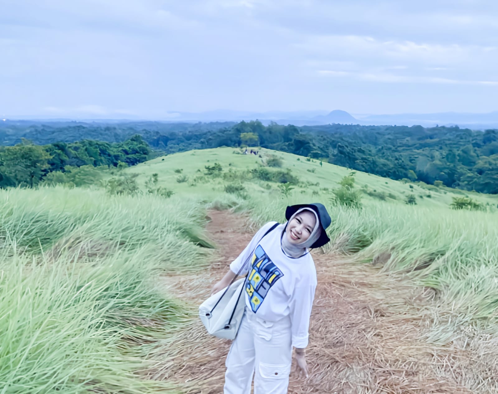 Setibanya di puncak, keindahan Bukit Japan langsung menyambut. Area bukit terbuka luas dengan hamparan rumput hijau dan jalur setapak yang alami. Saat matahari mulai terbenam, langit berubah jingga keemasan, menciptakan suasana dramatis yang menjadi daya tarik utama lokasi ini.