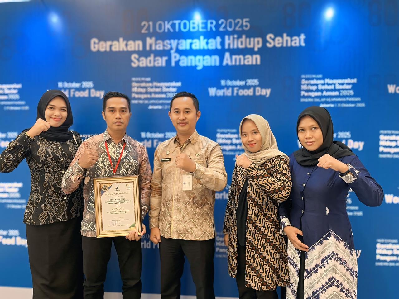 Pasalnya Kota Raja, di Amuntai Selatan, HSU, sukses meraih Juara Pertama Lomba Desa Pangan Aman Tingkat Nasional Regional Tengah, dilaksanakan Badan Pengawas Obat dan Makanan (BPOM) di Aula Gedung Bhineka Tunggal Ika, BPOM Jakarta Pusat, Selasa (21/10/2025).