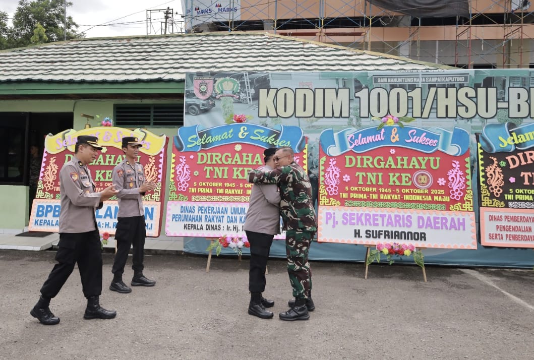 Dalam suasana penuh keakraban, AKBP Agus Nuryanto menyampaikan ucapan selamat sekaligus apresiasi atas dedikasi TNI yang telah menjaga kedaulatan dan keamanan negara selama delapan dekade.