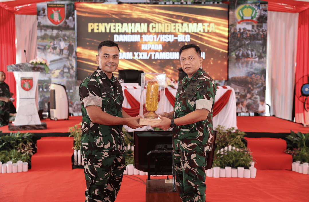Rangkaian penyambutan resmi tersebut, Pangdam menerima cinderamata berupa “kenanga abadi”, simbol keteguhan, pengabdian, dan keberlanjutan pembangunan di Bumi Agung.