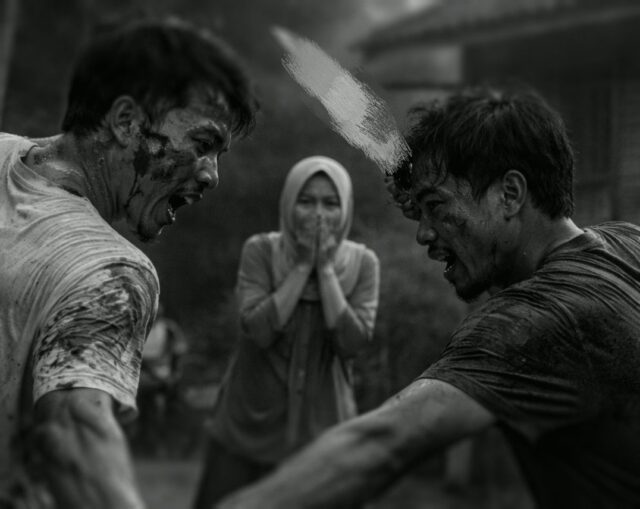 Keributan tersebut mengundang perhatian warga sekitar. Meski warga berdatangan, tidak ada yang berani melerai karena salah satu pelaku masih memegang senjata tajam.