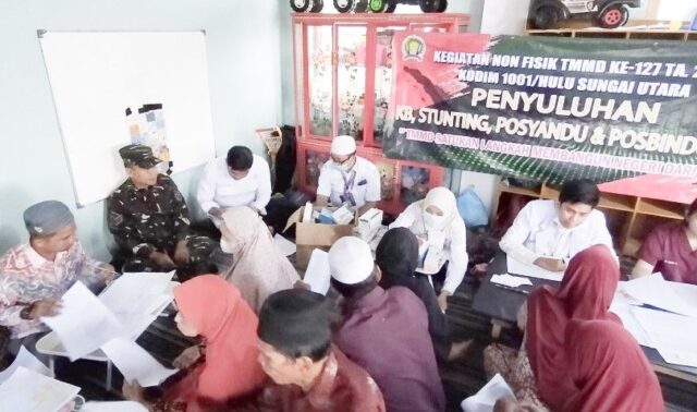 CakrawalaiNews.com, AMUNTAI – Satgas TNI Manunggal Membangun Desa (TMMD) ke-127 Kodim 1001/HSU–BLG tak hanya fokus pada pembangunan infrastruktur, tetapi juga bergerak menyelamatkan generasi melalui program kesehatan dan pencegahan stunting di Desa Hambuku Hulu, Kecamatan Sungai Pandan, Kabupaten HSU, Rabu (11/2/2026).