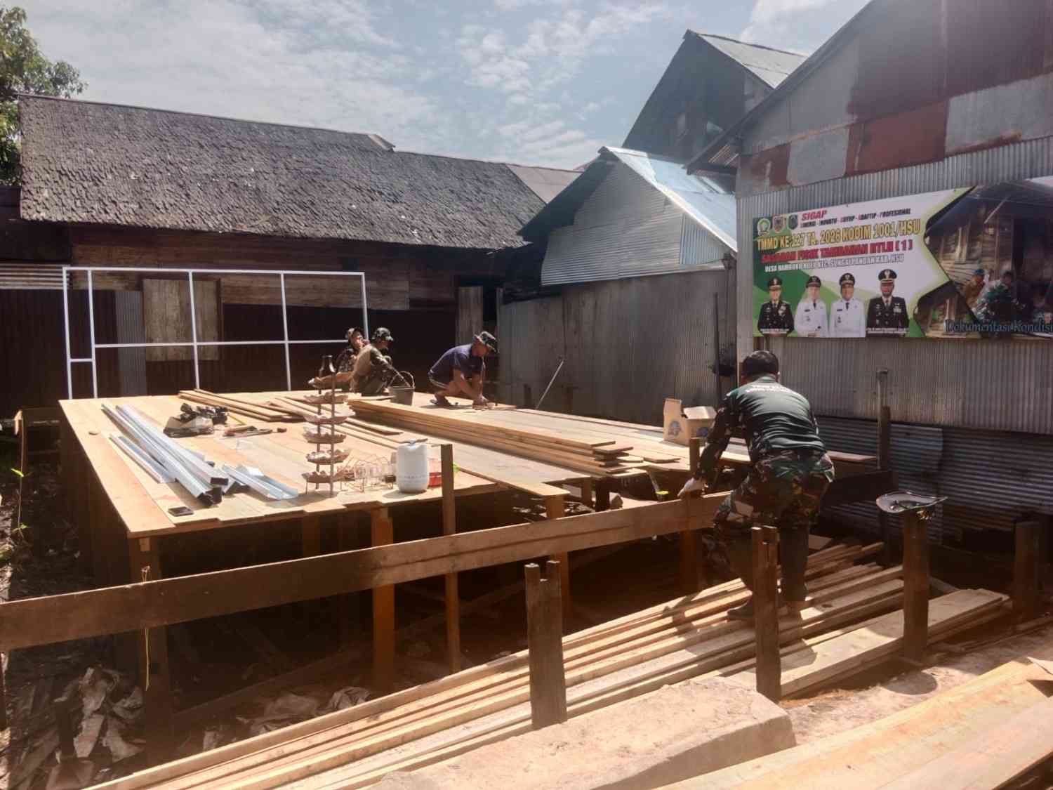 Dinding papan yang sebelumnya rapuh diganti, atap diperbaiki, lantai diperkuat. Semua dikerjakan dengan semangat gotong royong antara Satgas TMMD dan warga setempat.