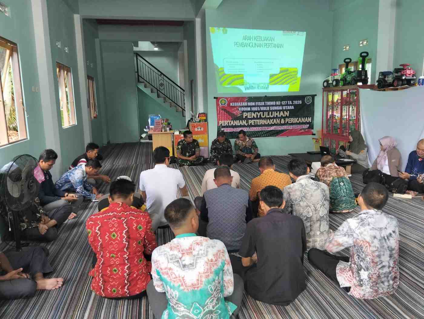 CakrawalaiNews.com, AMUNTAI – Satuan Tugas (Satgas) TNI Manunggal Membangun Desa (TMMD) ke-127 dari Kodim 1001/HSU menggelar penyuluhan pertanian dan perikanan bagi warga Desa Hambuku Hulu, Kecamatan Sungai Pandan, Kabupaten Hulu Sungai Utara (HSU), Jumat (13/02/2026).