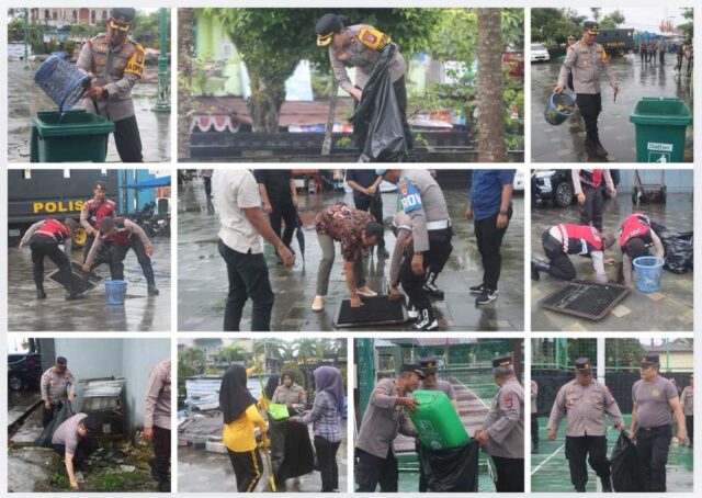 Tidak hanya melibatkan personel Polres, kegiatan gotong royong ini juga diikuti oleh seluruh personel Polsek jajaran yang melaksanakan aksi serupa di masing-masing kecamatan.