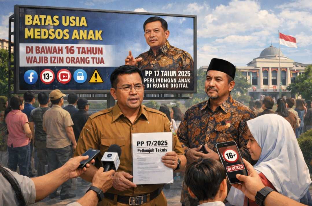 CakrawalaiNews.com, RANTAU – Pemerintah pusat resmi memperketat perlindungan anak di ruang digital melalui Peraturan Pemerintah (PP) Nomor 17 Tahun 2025, yang salah satunya membatasi penggunaan media sosial bagi anak di bawah usia 16 tahun tanpa persetujuan orang tua.
